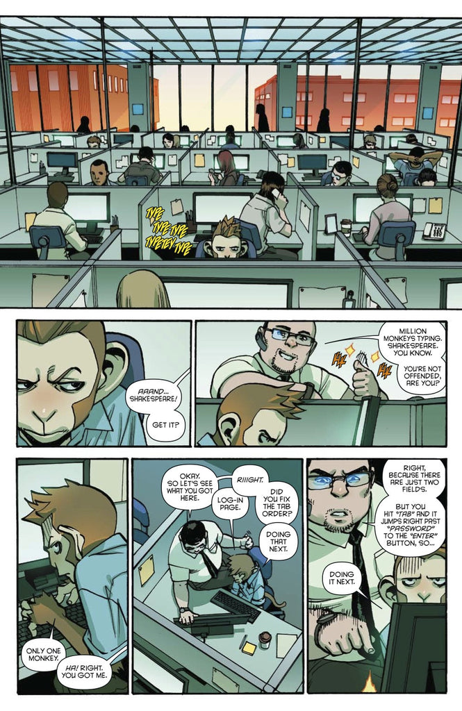A put-upon coding monkey teams up with a seething, lovelorn super-villain to fight robots, office worker zombies, and maybe even each other as they struggle to impress the amazing women for whom they fruitlessly long.