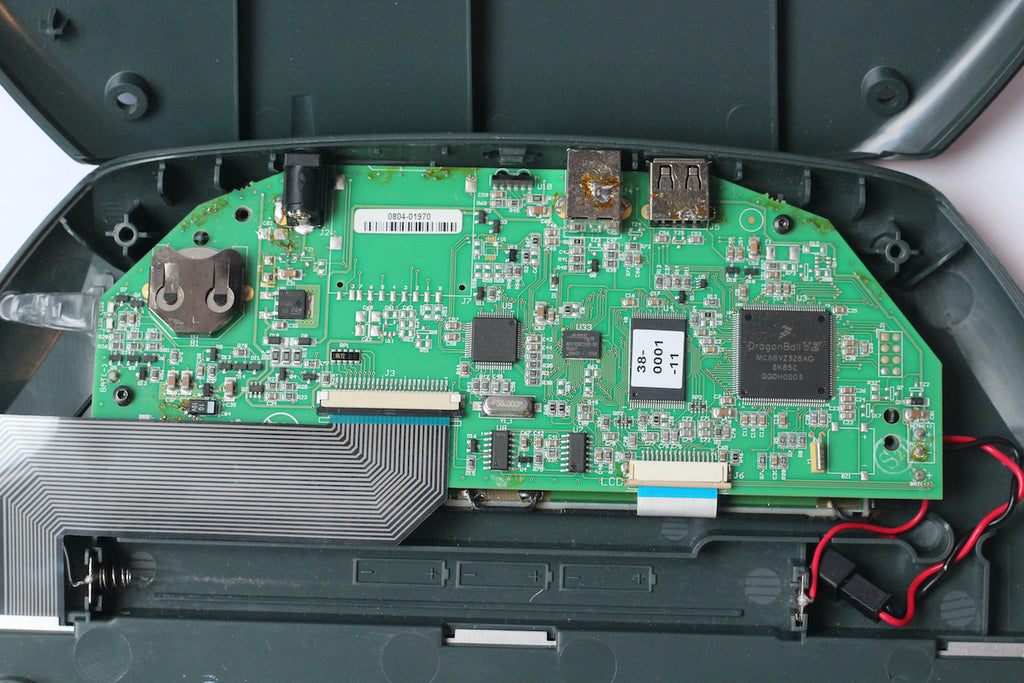 But this model is BROKEN and is being sold for parts. I'm not sure what's wrong with it -- I've used the screen by itself on a different Neo and the screen works on that different Neo, so there's something going on with this model's main circuit board or the way the batteries connect to the thing. As you can see in the photos, there's some discoloration from soldering at different points around the circuit board. If I remember right, when I first got this machine, it had some random wiring soldered around its edges. I called the Alphasmart people at the time and they said that that kind of wiring was not standard and shouldn't be there. I don't remember, but apparently I removed it. I don't remember if the machine ever worked, so I don't know if that wiring was some kind of repair job or not.