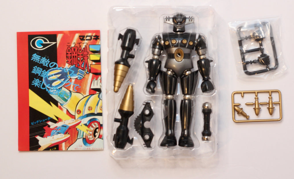 Okay, Micronaut fans! This is a big one! Steel Jeeg was the Japanese character/toy that served as the basis for the Baron Karza and Force Commander designs for the Micronauts. This toy is a retro remake from the early 2000s done in black, silver and gold! All original packaging included and all pieces are present. Box is open; toy was played with a bit but it's in great condition!
